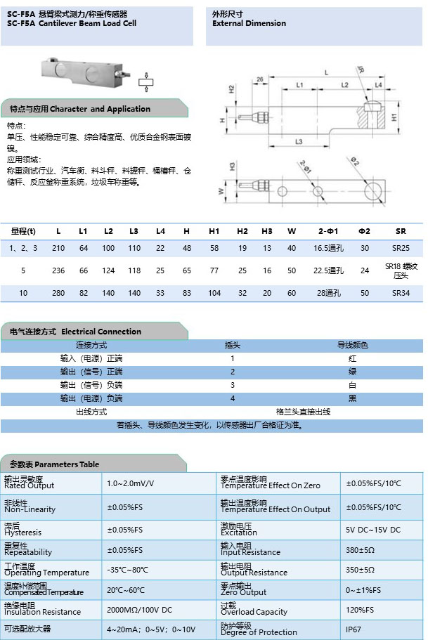 名稱:SC-F5A( SC-F5A Cantilever Beam Load Cell)